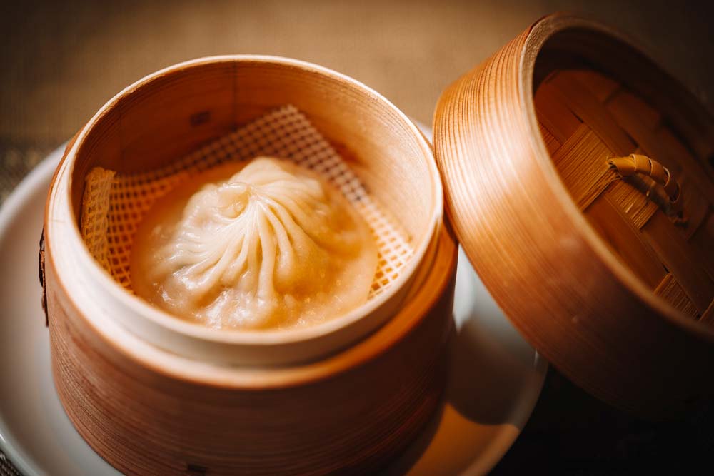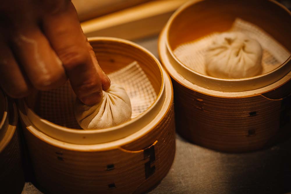 目の前で皮から作る薄皮小籠包をはじめ、